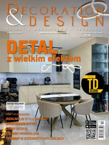 Decoration & Design to nowoczesny magazyn o architekturze wnętrz i designie. W każdym numerze zamieszczamy nowoczesne, designerskie oraz ekskluzywne aranżacje - rezydencje, apartamenty, lofty i mieszkania. Prezentujemy najnowsze trendy oraz materiały w aranżacji wnętrz. Magazyn pokazuje jak duży wpływ ma design na otaczającą nas przestrzeń. To pismo dla każdego, kto interesuje się wzornictwem przemysłowym i nowoczesną architekturą
